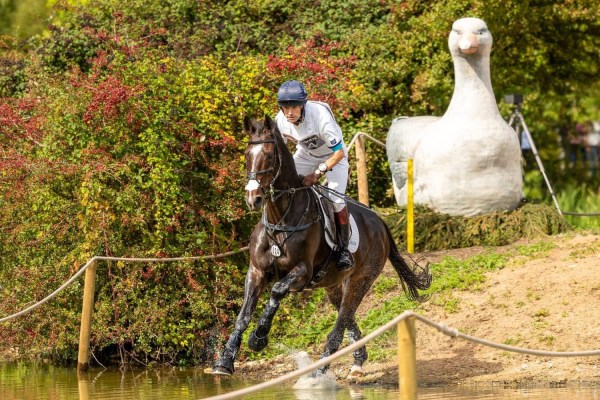 Et Hop du Matz was drawn No 1 and therefore pathfinder across country for all other competitors. He was also first down the centre line for the dressage and showed huge progress from his last 5* test in the Spring. He is a long, gangly horse who is continuing to grow in strength and is still far from the finished article. He put his best foot forward for a really solid test and a score of 32.